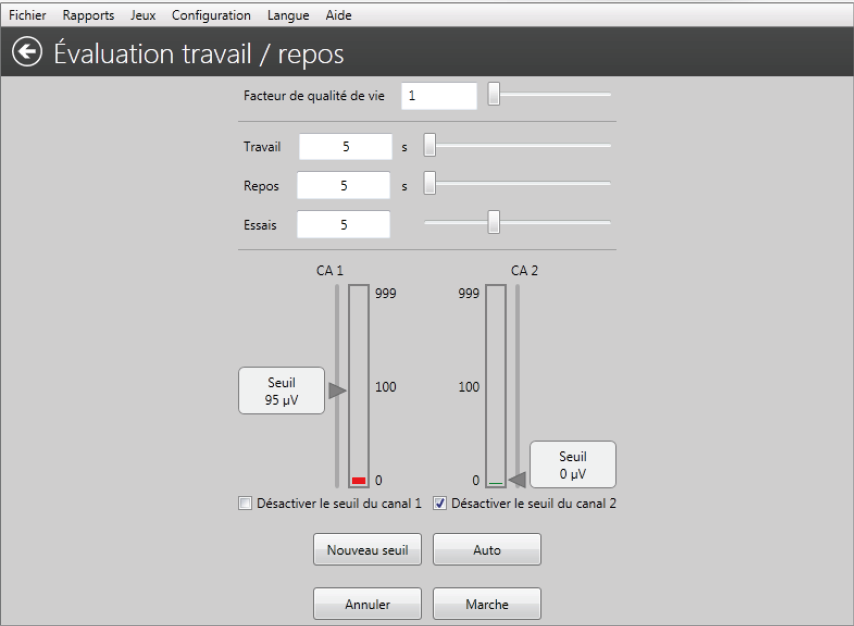 | 8 jeux ludiques pour des exercices de biofeedback adaptés | Réglage du seuil et du temps de travail et de repos sur l'appareil ou le PC | Le modèle créé un schéma qui peut être utilisé comme guide pour les exercices de biofeedback |